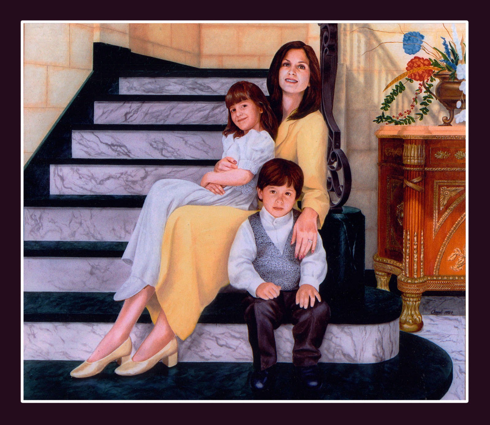 FAMILY Lady and 2 Children OIL PAINTED